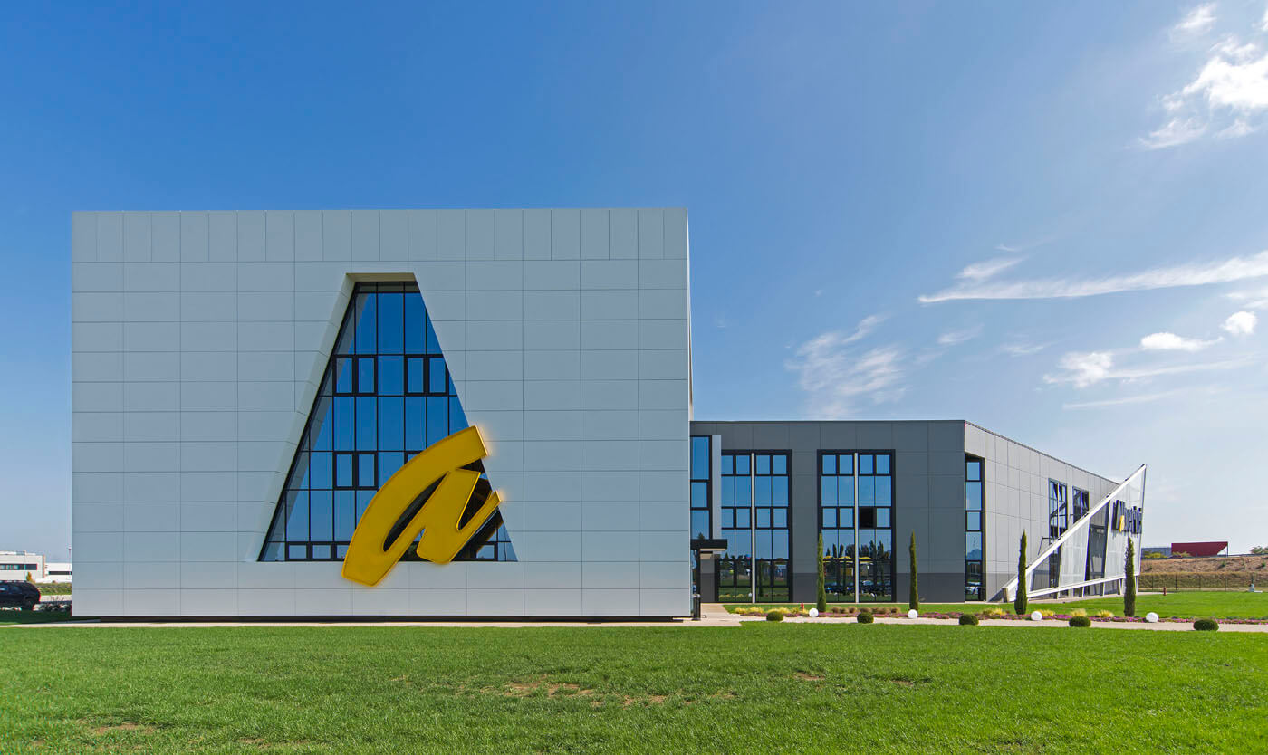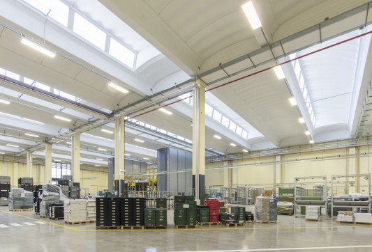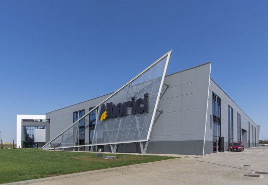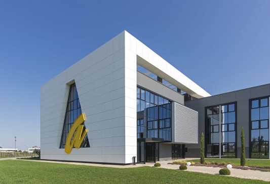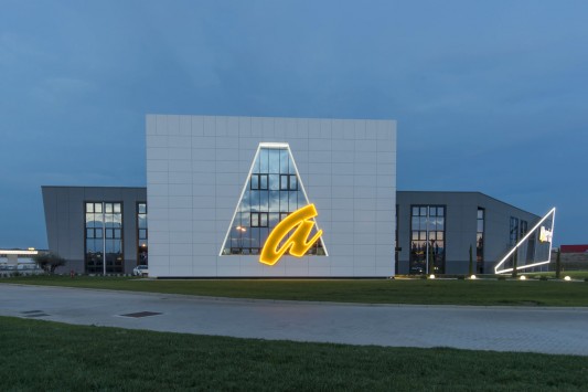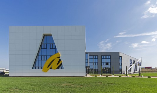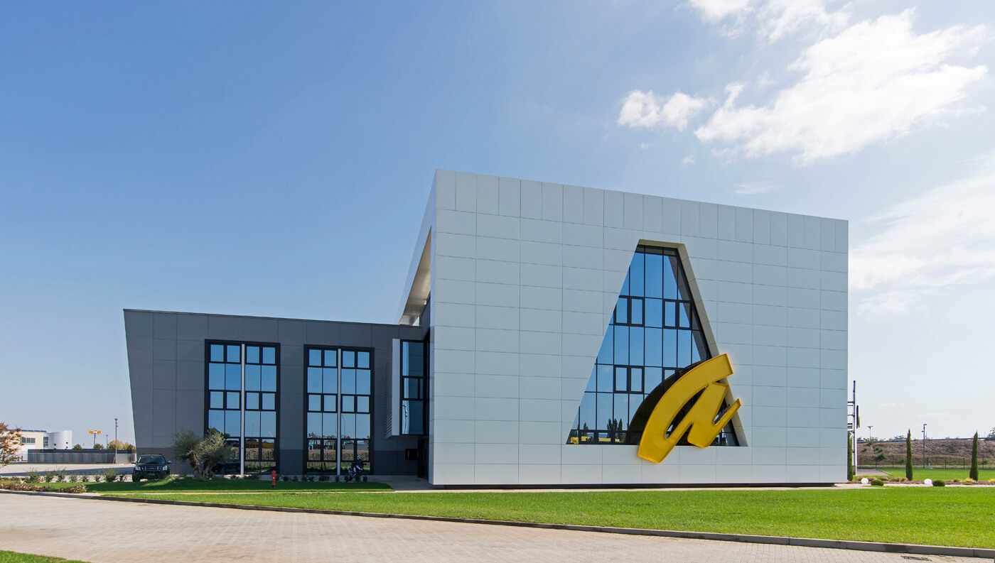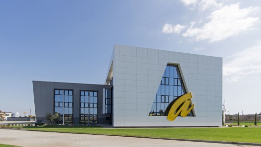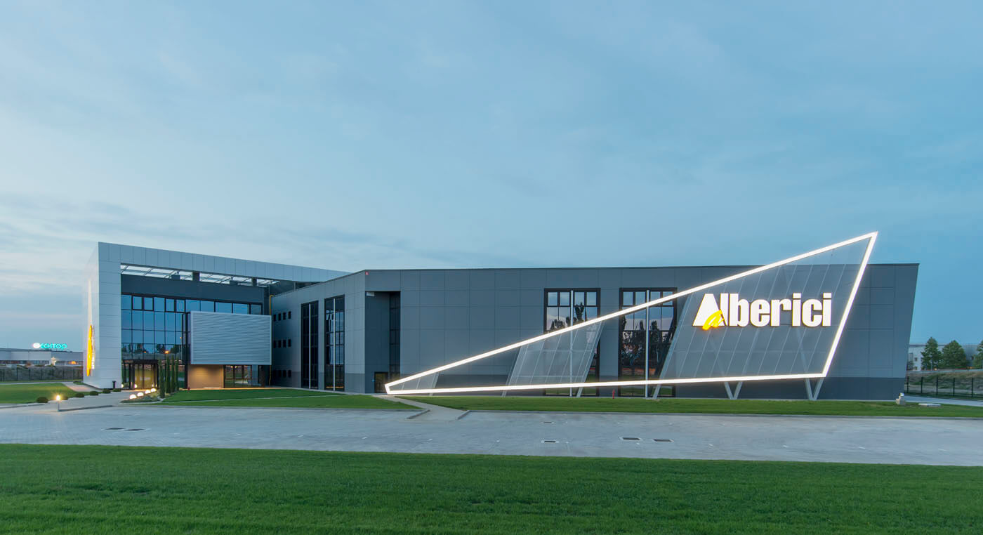 L’edificio, il cui marchio e design risultano ben visibili dall’Autostrada A14 in zona di Ca’ Bianca (Castel San Pietro Terme - BO), ha richiesto un sofisticato studio di progettazione ingegneristica vista l’architettura molto complessa che lo caratterizza con 3 corpi di fabbrica (uffici, produzione e magazzino) su una superficie di 7.700 mila mq.