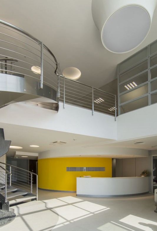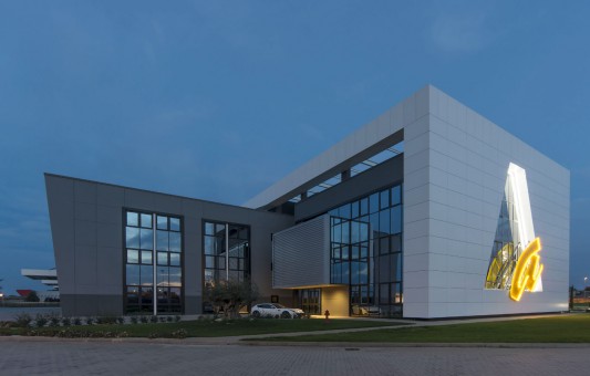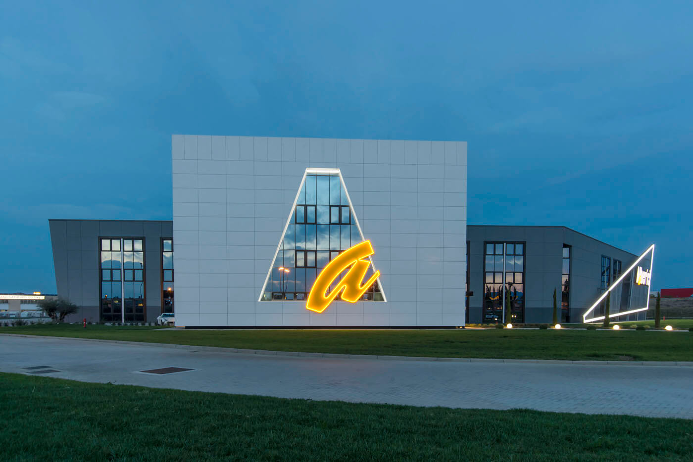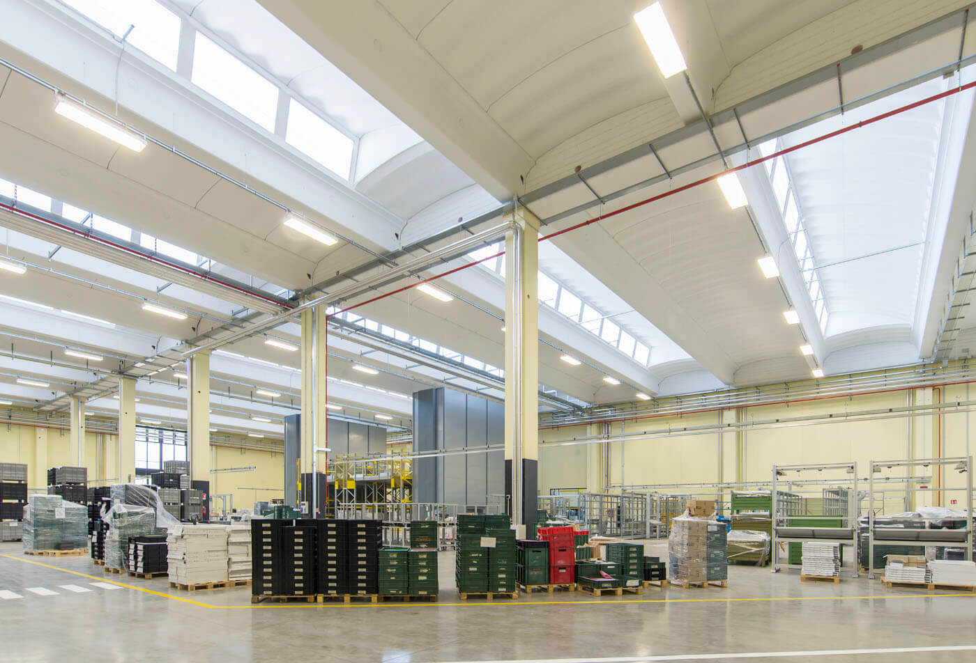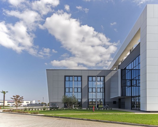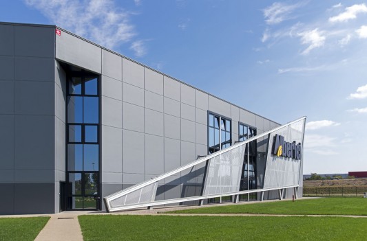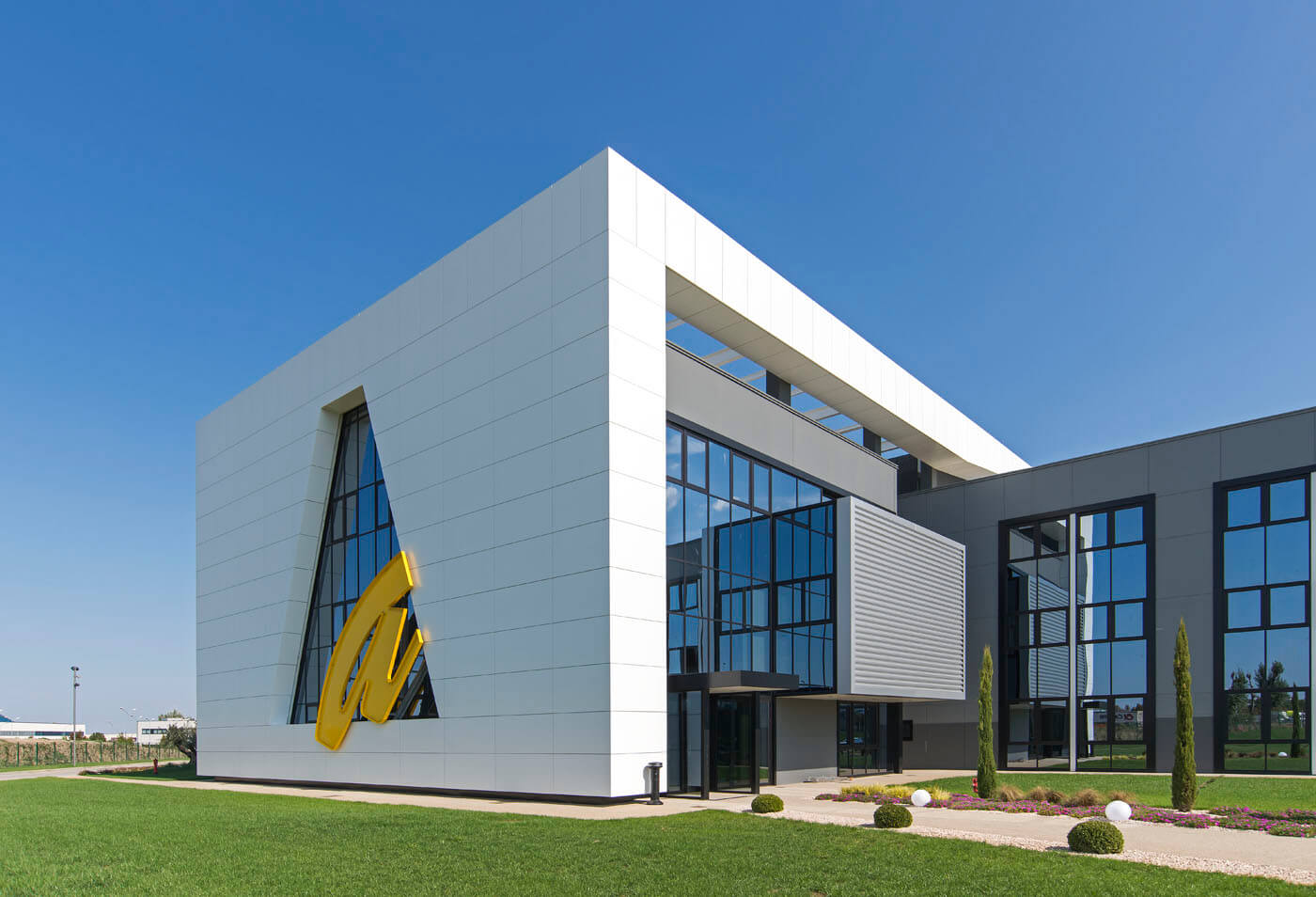 L’edificio, il cui marchio e design risultano ben visibili dall’Autostrada A14 in zona di Ca’ Bianca (Castel San Pietro Terme - BO), ha richiesto un sofisticato studio di progettazione ingegneristica vista l’architettura molto complessa che lo caratterizza con 3 corpi di fabbrica (uffici, produzione e magazzino) su una superficie di 7.700 mila mq.