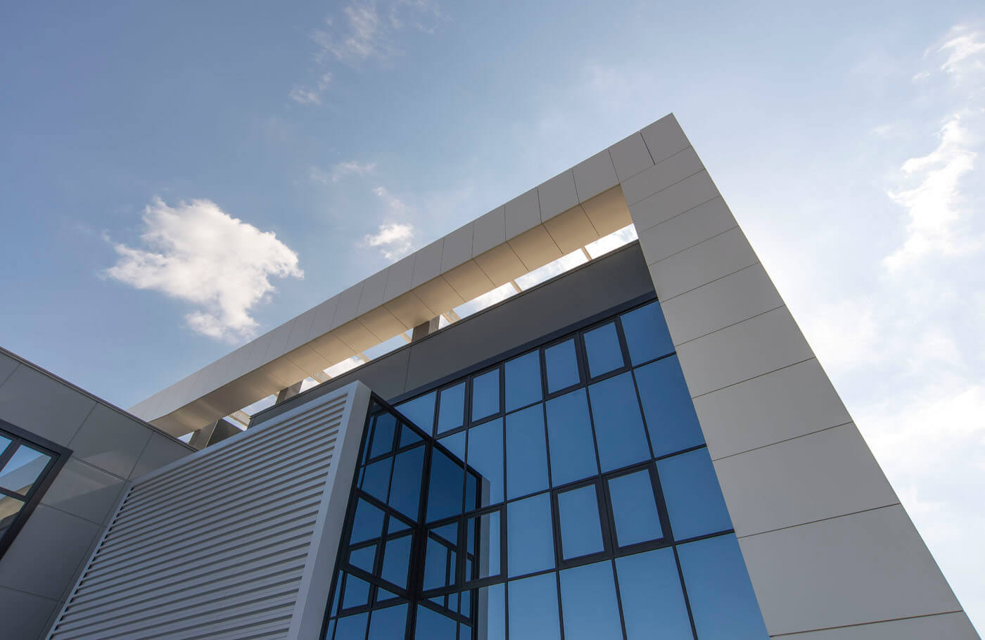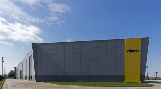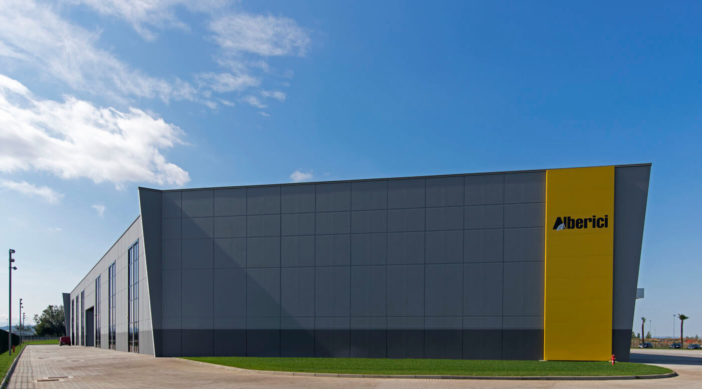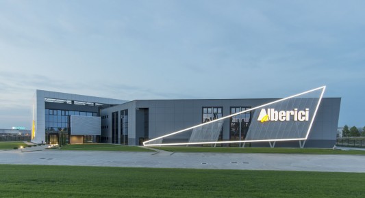 La copertura Baraclit impiegata nell’area direzionale è il tegolo Pianaliant, mentre nella zona produttiva il sistema b2000 composto da travi portanti in c.a.p. e coppelle secondarie in calcestruzzo strutturale precompresso che ha risolto il difficile sviluppo dello stabile a perimetri irregolari e lati obliqui. Alberici ha inoltre commissionato alla divisione Baraclit b.POWER un impianto fotovoltaico da 200 kWp integrato a tetto con pannelli in silicio monocristallino ad alta efficienza (serie “Premium”) del produttore tedesco Solar Fabrik AG.