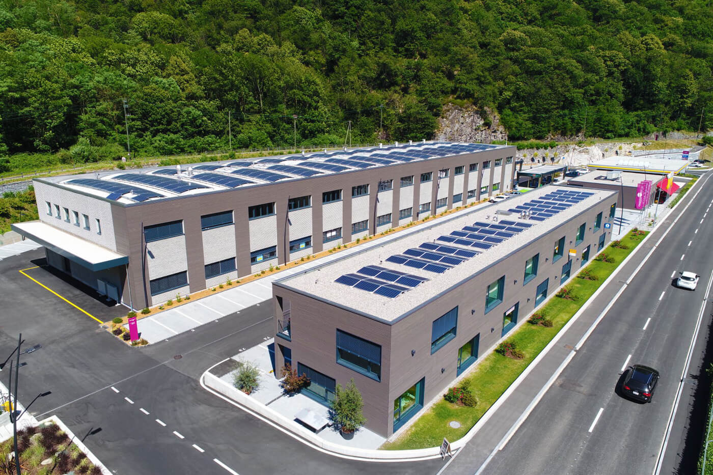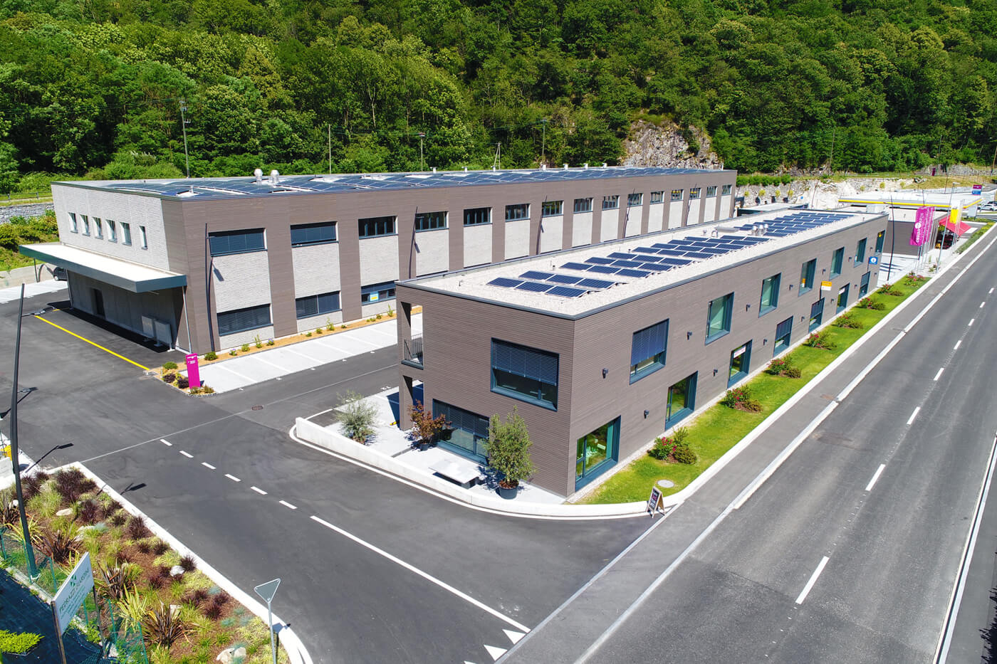 CENTRO PUNTO VALLE ha aperto al pubblico, nel comune svizzero di Avegno Gordevio (Canton Ticino), la nuova area commerciale al confine tra la città di Locarno e l’imbocco della Valmaggia, dove hanno trovato spazio tante piccole realtà artigianali, oltre ad un centro di distribuzione postale e una palestra. Il complesso ha preso forma in parte mediante ristrutturazione di una ex segheria, con risanamento di stabili esistenti lungo il confine nord, ed in parte mediante costruzione di 4 nuovi edifici distinti tra loro: uno espositivo e amministrativo, uno industriale artigianale realizzato da Baraclit Prefabbricati, una stazione di benzina con shop e bar ed un autolavaggio con annesso ampio parcheggio, comprendente una zona camper per la sosta dei turisti che giungono al sud delle Alpi.