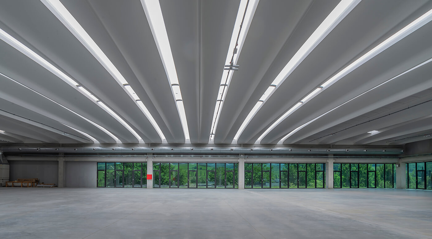 Leitmotiv dell’intervento: inserire l’architettura industriale nel territorio circostante ripensando la qualità dei luoghi di lavoro in chiave sostenibile, unire industria e ambiente, fondere architettura e natura. Sintesi perfetta di design industriale e naturale, equilibrio tra edificio costruito e paesaggio, la sede coniuga funzionalità, rigore ed eleganza in un mix di benessere e bellezza che ha saputo creare spazi confortevoli e sostenibili, per chi li vive e chi li osserva.