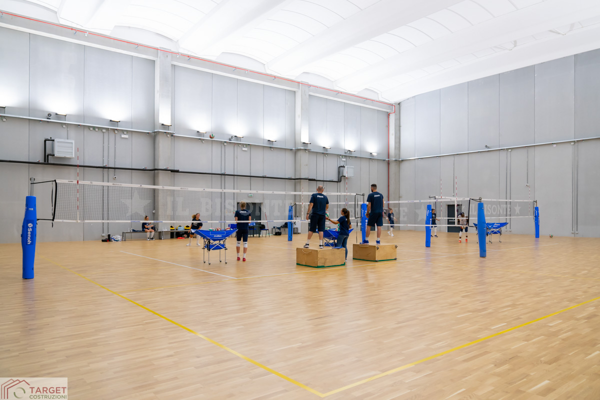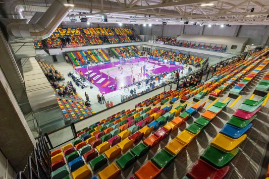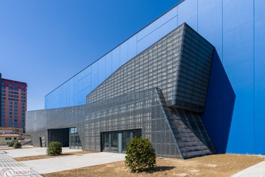 Il palasport si compone di due corpi: il palazzetto con una capienza max. di 5.000 posti, dotato di tribune retraibili che rendono lo spazio flessibile e adatto a iniziative non solo sportive (concerti, eventi, fiere), e l’impianto sussidiario adiacente (prefabbricato anch’esso in c.a.p. a marchio Baraclit) adibito a palestra per allenamenti, sala wellness, centro di fisioterapia, area uffici e sala convegni da 300 posti. Una splendida eredità lasciata da Wanny Di Filippo a cui Baraclit con Target Costruzioni è orgogliosa di aver dato forma concreta.