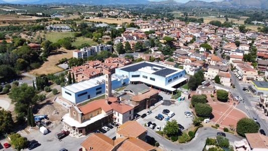 Un edificio prefabbricato di 3.500 mq completamente demolito e ricostruito nel segno dell’innovazione, della sicurezza e della sostenibilità, con finanziamenti nazionali PNRR. La struttura, che può accogliere fino a 500 alunni, si articola in 22 aule moderne e luminose, laboratori di informatica, musica e arte, una biblioteca e una palestra. Il tutto tra nuvole e cielo azzurro dipinti sulle facciate sorrette da colonne pilastro a mo’ di matite gialle, rosse e nere. Un investimento concreto sul futuro delle giovani generazioni e un nuovo punto di riferimento per la comunità. La primaria “Cures Sabini” sorge nel cuore del paese e non solo è uno stabile sicuro ed efficiente, ma è un luogo pensato per la crescita e la formazione di tantissimi ragazzi.