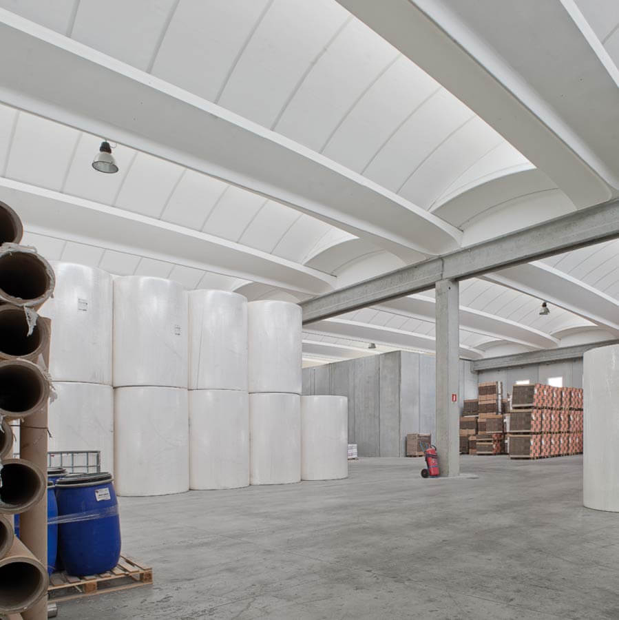 Il committente, sensibile al tema del rispetto ambientale e all’ecologia della carta che non cela l’utilizzo di sbiancanti o coloranti, ha richiesto l’integrazione a tetto di un moderno impianto fotovoltaico da 820 kW per produrre da fonte solare l’energia necessaria al fabbisogno dello stabilimento. Una filosofia green, orientata alla sostenibilità come il modus operandi trasparente e senza ombre dell’azienda.